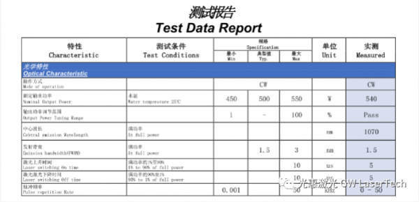 ▲光学特性 ▲光斑 ▲M2因子 ▲输出光谱