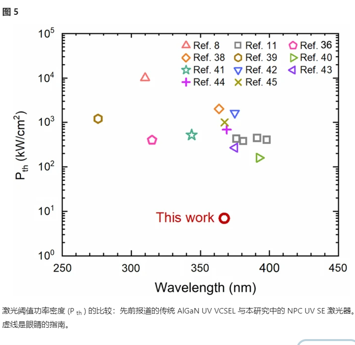 图 5显示了本研究中实现的欧陆娱乐阈值与先前报道的不同波长的传统 AlGaN UV VCSEL 的欧陆娱乐阈值的比较图。可以看出,对于传统的AlGaN UV VCSEL,激射阈值在几百kW/cm 2到MW/cm 2范围内,并且激射阈值随着激射波长的变短而增加,如虚线所示. 对于波长类似于本研究中波长的欧陆娱乐,阈值约为 0.7–1 MW/cm 2。相比之下,本研究中的欧陆娱乐阈值仅为 7 kW/cm 2左右。