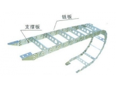 TLG型钢制拖链系列: TLG 型钢制拖链可承载数量多,重量大的电缆及油管,自由悬置 ( 允许不用支撑轮 ) 长度大 , 支撑板可依顾客需要制作 , 适用于工作母机 , 移动机械等 . 其弯曲半径为 100 -...