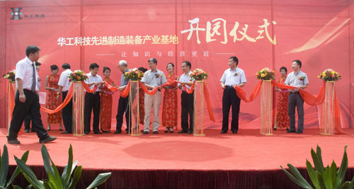 作为华工科技加速产业规模化、国际化进程的重大工程——华工科技先进制造装备产业基地,于9月15日开园投产,这也是继2009年7月华工科技孝感电子产业园落成后,华工科技为服务武汉“1+8”城市圈建设的又一重要举措。华中科技大学校长李培根、副校长杨勇,鄂州市市委书记范锐平,市委副书记、鄂州市市长陶宏、公司董事长马新强以及国内、外客商代表,百余名华工科技员工共同见证了这一时刻。