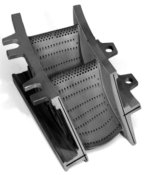 图2 涡轮机的一个定子叶片(西门子发电机), 表面等离子溅射的热隔离涂层材料YSZ (氧化锆)
