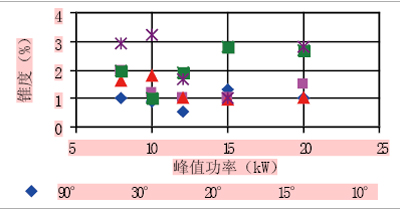图9 锥度%与峰值功率 (JK300D)