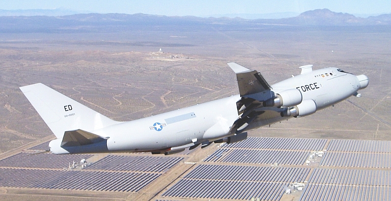 美国空军第一架机载欧陆娱乐武器以波音747-400F为平台,隶属于美国空军爱德华兹空军基地,编号00-0001。由导弹防御局(MDA)、美国空军 与波音公司、洛克希德·马丁公司、诺斯罗普·格鲁曼公司合作研制。该飞机装载了功率强大的高能COlL化学欧陆娱乐器,用于摧毁处于助推段的弹道导弹。