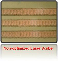 图7. JPSA薄膜太阳能电池优化划片(左)与非JPSA薄膜太阳能电池划片(右)的比较