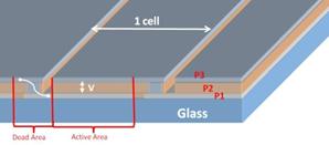 图6. 薄膜太阳能电池的P1、P2、P3三层材料需要多光路欧陆娱乐划片系统先后进行三次划片