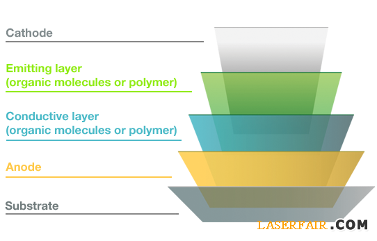 OLED全称是Organic Light-Emitting Diode(OLED),中文是有机发光二极管,是当前最先进的照明技术。与传统的LCD照明方式不同,无需背光灯,采用非常薄的有机材料涂层和玻璃基板。当有电流通过时,这些有机材料就会发光。OLED结构包括5层:阴极、发射层(有机分子或聚合物)、导电层(有机分子或聚合物)、阳极、底基。OLED灯具备轻薄、可视度高、省电等特性。