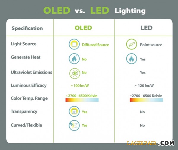 目前市面上的普通LED灯都是点光源发光,而OLED是散射光源,不会在使用时形成阴影给眼睛造成负担。