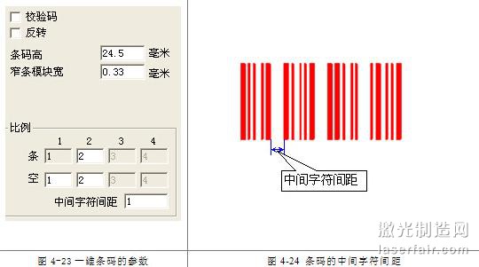中间字符间距:个别条码规定字符与字符之间有一定的间距(例如 Code39)。该参数用来设置此值,如图4-24所示。