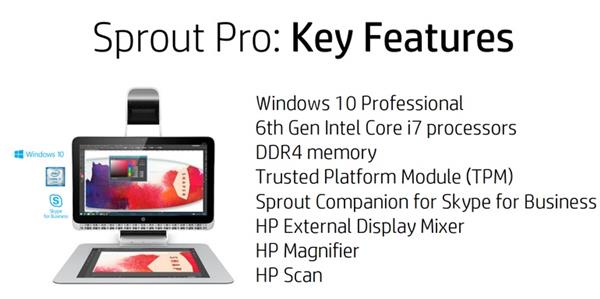 2016年1月19日,惠普公司发布Sprout Pro,这是该公司在2014年发布的浸入式计算平台Sprout的最新版本。据了解,Sprout最初的设计是针对消费客户,而这次最新推出的Sprout Pro则把焦点转向了教育和企业领域。Sprout是一款将投影仪、3D扫描仪、3D摄像头、触摸屏同时集成进一个桌面设备的计算机。这是惠普公司规划中的混合现实系统中推出最早的一个产品系列。(该系统还包括尚未发布的多射流熔融3D打印技术)。