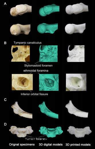 “使用摄影测量法创建的3D打印模型仅显示了骨骼标本的外部特征;内部结构是不可见的。人体标本也有此限制。为了在颅骨内部显示不同的解剖标志,必须使用三个或四个不同解剖的标本。在创建显示不同解剖结构的3D打印模型时,可以应用相同的策略——选择不同解剖或切片的标本作为摄影测量的资源。”研究人员解释说。