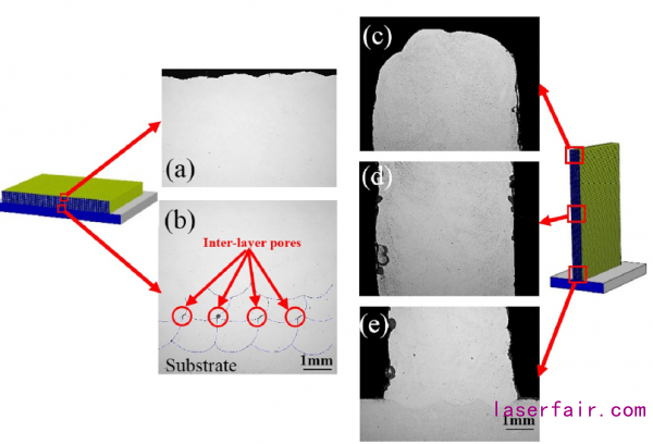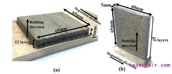 图3、机器人欧陆娱乐送丝系统制备的薄壁墙和块体样品