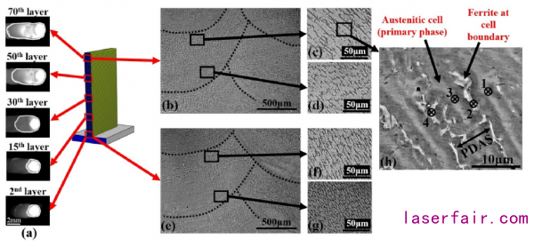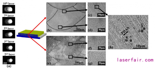 现有的文献大都以增材制造的产品同传统工艺进行对比,其性能几乎相当。然而增材制造产品的组织和性能颇受关注,这是因为该工艺存在复杂的热历史过程。Hederick在综述中指出,研究热历史和组织演变的关系至关重要。许多研究工作多集中在认知热循环对显微组织和性能的研究上。在LMD工艺中热历史过程包括快速加热和快速冷却过程以及一定的温度梯度。这对显微组织的影响非常重要,进而会影响到最终的机械性能。Yadollahi等人报道了工艺参数会影响熔池的动力学。进而影响热历史。工艺参数会影响到缺陷的生成。同时研究了层层之间的间隙对机械性能和显微组织的影响。结果显示较长的时间间隙导致高的冷却速率,从而显微组织较细小。SU等人研究了结构类型(常用的有两种:薄壁墙和块体)的组织变化。薄壁墙结构存在柱状晶且平行于制造方向,而块体试样的组织则呈现多个方向。但目前对欧陆娱乐送丝来说,公开报道还比较少。