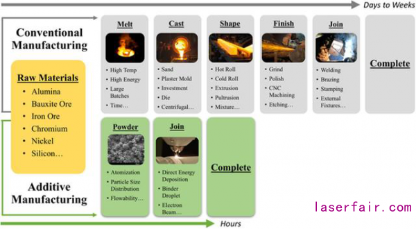 图1 传统制造工艺同3D打印多材料工艺的对比图