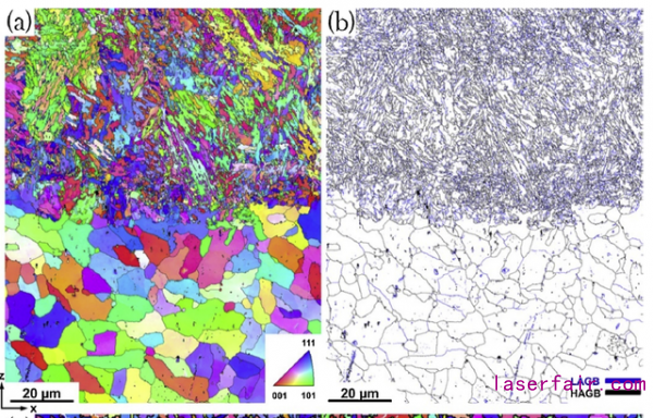 图7 多材料打印MS1-H13时界面处的EBSD图(文献2)