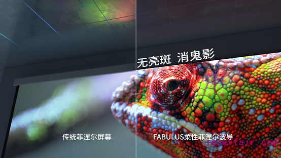 如何能兼具菲涅尔硬屏、黑栅幕两者优势,同时满足优质观影体验与轻便安装的需求?2020年11月10日,光峰科技新推出的FABULUS柔性菲涅尔波导屏,正为此而来。