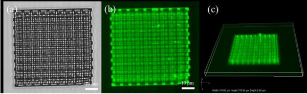 研究团队利用该光敏体系实现了结构保真度和力学性能良好的仿生3D水凝胶细胞支架结构的3D打印,研究了细胞在支架上的生长行为,荧光探针标记和显微成像研究证实了该类引发剂具有良好的生物相容性,这为水凝胶材料在组织工程领域中的应用提供了科学依据。
