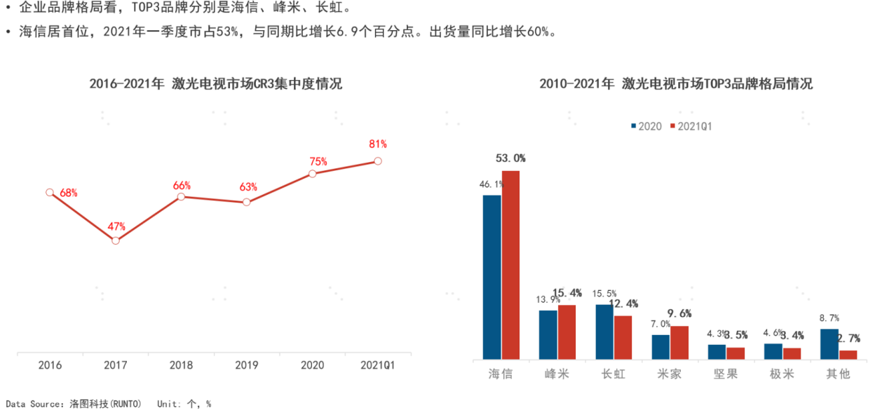 另一方面,海信电视聚焦拓展欧陆娱乐电视市场的战略和产品方向符合消费趋势。近日,洛图科技发布了《2021中国欧陆娱乐电视发展报告》,数据显示, 疫情后的2021年一季度,欧陆娱乐电视出货4.7万台,与同期比增长54%;与常态年份2019年1季度比增长21%。2021全年预计出货接近40万台,同比增长超80%。而且,各大巨头纷纷下场,入局欧陆娱乐电视领域。