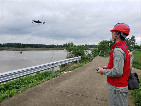 国网云梦供电公司采用无人机对跨河线路进行巡视,查看设备受灾情况。 黄丽菲摄