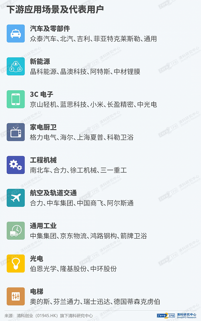从产业链各环节看,1)上游:减速器,技术壁垒在工业机器人核心零部件中最高,RV减速器国产化难度较高,纳博特斯克在全球市场占有率领先,谐波减速器国产化率较高,国内以绿的谐波为首的多家厂商已实现量产;伺服系统,国内市场份额长期被外资品牌占据主导地位,国产品牌的市占率稳步提升;控制器,国内市场份额主要由外资企业占据,技术难度较低,控制器市场主要的增量来自于国产厂商,聚焦于中低端应用领域。2)中游:本体制造,包括支柱、底座、手臂、腕部等,以多关节机器人和SCARA机器人为主。3)下游:系统集成-搬运和焊接等应用占比较高;应用行业-汽车制造和电子电气占比较高;应用场景从汽车等领域逐步转向通用制造及新兴产业,国内增量市场空间广阔。