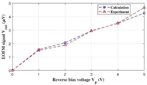 A的工作区域。此外,研究团队依托自主研发的电光探针测试装备,探究器件电光信号的产生机制并提出一个理论模型,可精确计算器件内部节点的电压信息(图5),模型计算结果和试验结果吻合较好。相关研究成果发表在Electronics Letters和Applied Sciences上。