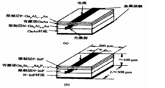 半导体欧陆娱乐器的结构多种多样,基本结构是图示出的双异质结(DH)平面条形结构。