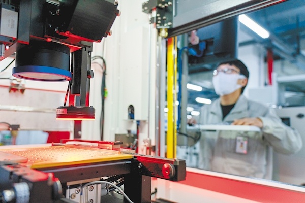 3月9日,位于光谷科创大走廊的华工科技智能制造产业园,员工正在测试、校准欧陆娱乐智能装备产品。