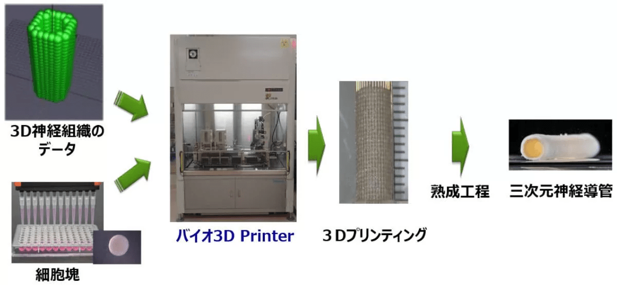 再生医学的研究在不断进步,也越来越为人所熟知。用于移植用这种生物3D打印机制造的3D神经导管的再生医学技术已经处于临床试验阶段。在不久的将来,它将成为任何人都可以接受的常见治疗方法。由于末梢神经的损伤而无法随心所欲地活动手指的痛苦,为了自体神经移植而在提取神经的部位留下的疼痛,许多人所承受的痛苦,在不久的将来就会得到解决。