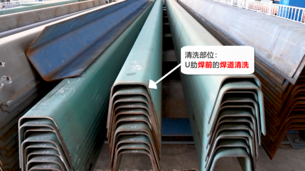 一座几十万吨规模的桥梁至少需要上百万块U肋板单元,相当于桥梁的“骨骼”。U肋待焊部位的清洗质量对后续加工环节——正交异性桥面板的焊接质量有着关键性作用,也是桥梁使用寿命、安全性、抗风与抗震等性能的重要影响因素。
