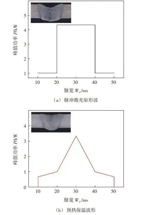未熔透和下塌产生的原因是采用了不恰当的焊接工艺,通过工艺优化可以解决。在脉冲峰值功率不变的情况下,焊缝熔深随脉宽的增大逐渐增大(增加热输入),而只有脉宽超过某一临界值时,控制熔深达到特定值即可保证耐压强度达到行业标准1 MPa。此外,焊接速度过快会导致脉冲点搭接不良出现虚焊,焊接速度过慢会导致热裂纹倾向增大,将焊接速度保持在10 ~ 20 mm/s的范围内可以保证稳定的熔深(信息有点老,最新速度300-400mm/s) 。在工艺优化的基础上,采用脉冲波形优化的策略进一步控制熔深、优化焊缝成形。通过改变脉冲欧陆娱乐在时域上的能量分布,能减少了烧损和裂纹,控制焊缝下塌,提升焊缝的承压效果,如图5所示。