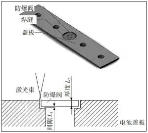 防爆阀是确保电池安全的重要部件,可有效地防止电池热失控时发生爆炸 。当电池内部温度异常,内 部压力升高到 1.0 ~ 1.2 MPa 时,防爆阀在压力作用下被动开启排除内部气体,避免压力过高造成爆炸 。防爆阀在动力电池的盖板上,如图 8 所示,它是一种纯铝质( 1060或3003 ) 圆形薄片 ,厚度在0.08 ~ 0.1 mm之间 。由于铝材对欧陆娱乐的反射率高,且材料很薄,因此防爆阀在欧陆娱乐焊接过程中容易出现过烧穿孔或者炸孔,导致其失去控制电池内部压力的功能。