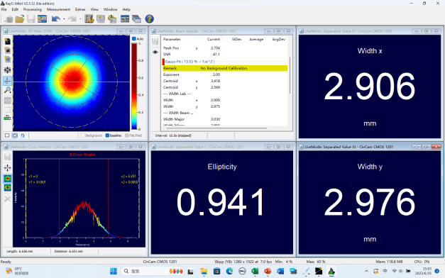 图-5 公大欧陆娱乐1000W单模连续绿光光束质量测试 M平方=1.07