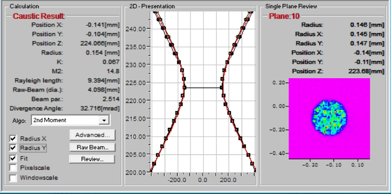 图-8 3000W多模连续绿光光束质量测试 M平方=14.8