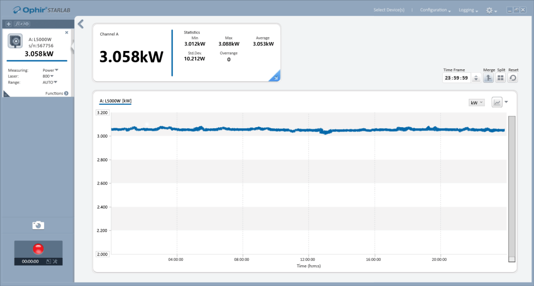 图-7 3000W多模光纤绿光24小时功率稳定性