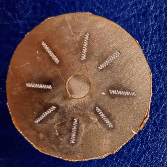 (1)大圆柱电池负极集流盘焊接,焊接方式:铜-铜箔叠焊;焊接材料:0.2mm紫铜和30层6um铜箔: