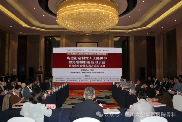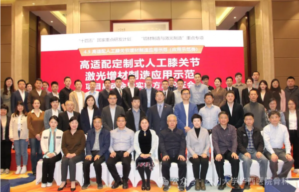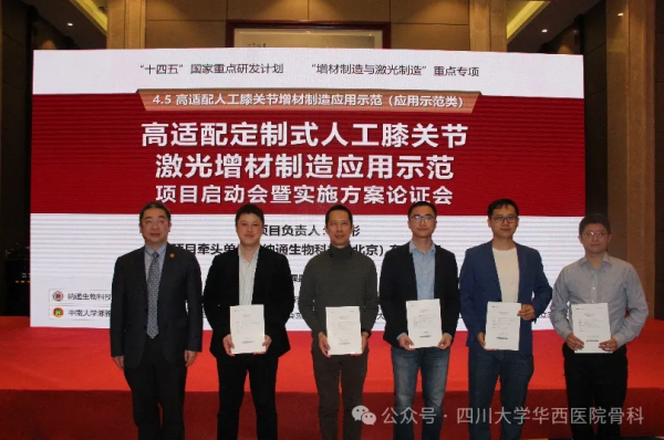 2024年3月23日,由四川大学华西医院沈彬教授担任项目负责人,四川大学华西医院联合纳通生物科技(北京)有限公司、联影智能医疗科技(北京)有限公司、华南理工大学、北京清华长庚医院、中南大学湘雅医院、北京大学第三医院、西安市红会医院、河北医科大学第三医院和山东第一医科大学附属省立医院10家单位共同攻关的“十四五”国家重点研发计划“增材制造与欧陆娱乐制造”重点专项——“高适配定制式人工膝关节欧陆娱乐增材制造应用示范”项目启动会暨实施方案论证会于四川成都顺利举行。