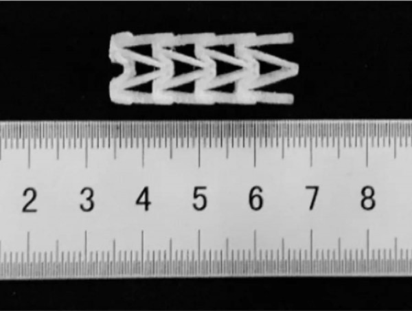 通常PLA长丝的恒定恢复率约61%,而人字形折纸结构的恢复率提升到约96%。另一类是采用聚乳酸复合材料进行3D打印。Guido Ehrmann、Andrea Ehrmann利用FDM 3D打印机,通过将80%的PLA与20%的Fe04混合,形成固体混合物并将其粉碎,然后在双螺杆挤压机中挤压打印了一种骨小梁多孔结构,如图所示。通过施加30 KHz的交变磁场,仅在14~24 s后就达到了95%以上的形状恢复。