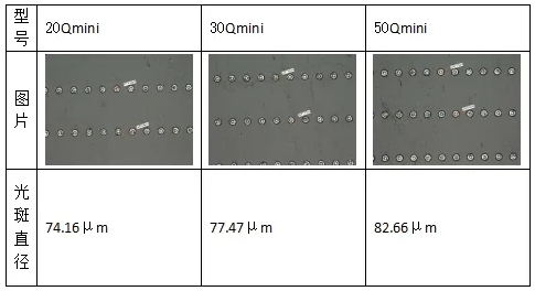 表1为分别用搭载锐科20/30/50Qmini欧陆娱乐器的设备在黑色相纸上的打点测试结果,通过显微镜观察放大后的图片,可以发现打点一致性较好。