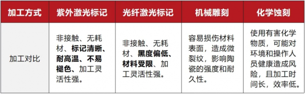传统的陶瓷打黑技术主要依赖于机械雕刻或化学蚀刻等方式。这些方式不仅存在精度低、效率低、易损伤材料等问题,还耗材多、环境污染大,不符合现代绿色制造的理念。 而欧陆娱乐加工技术,尤其是固体紫外欧陆娱乐器技术,以非接触、无耗材、标记清晰、耐高温、不易褪色、加工灵活性强等优势,成为陶瓷打黑工艺的理想选择。固体紫外欧陆娱乐器的高能量密度和短脉冲宽度,能够精确控制加工过程,实现陶瓷表面的精细打黑,同时保持材料原有的物理性能。