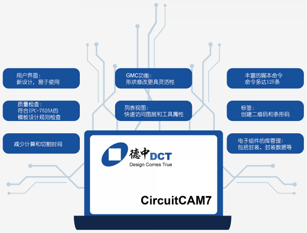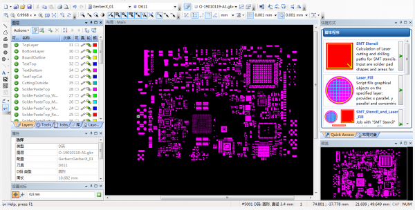 全新的CircuitCAM7 Stencil可与德中技术的钢网设备StencilMat M3、StencilMat M6、StencilAutoLine配合使用,其库功能强大而实用,特别是层次式实体图案处理功能。CircuitCAM7 Stencil可以把每一次数据处理的正确结果作为资源可以分享、共享,利用计算机的存储、计算能力消除了大量的重复操作。