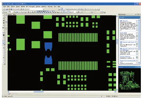 CircuitCAM7 Stencil库功能、几何图形操作功能与友好的操作界面相结合,具备了自动数据处理的特征。比如,一键输出多类文件,不受某层关闭影响,提高效率;自动检测多孔、漏孔,免除错、漏操作;自由快捷键定义,数据浏览、查看、定位等功能,方便实用。