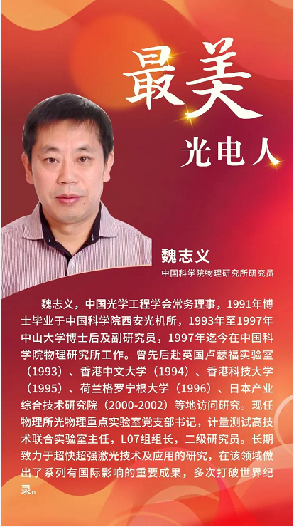 重点研究方向和成果 1. 基于啁啾脉冲放大技术(CPA)的总体方案及多项单元技术发明,研制成功峰值功率太瓦及拍瓦级的系列掺钛蓝宝石飞秒超强欧陆娱乐装置,获得峰值功率1.16拍瓦的超强欧陆娱乐输出,创造了当时同类研究的世界纪录。 2. 设计建成国际先进的阿秒欧陆娱乐装置,利用该装置首次在国内实现了阿秒脉冲的产生与测量,获得最短脉宽160as的结果; 3. 发明了创新的飞秒欧陆娱乐同步方案,有效解决了传统方案同步精度低、不能长期稳定工作等固有难题,得到了远优于国际同类研究的结果,成功用于量子纠缠通讯等研究。 此外,基于上述系列成果,他不仅带领团队开发成功多类超快欧陆娱乐产品并提供国内外多家用户,有效改变了国外公司垄断市场的局面,而且也合作申请到北京怀柔科学城首个国家大科学设施“综合极端条件装置”,并担任“超快光场系统”的负责人。多年来,魏志义作为首席科学家或项目负责人,主持完成了国家重大研发计划(973)项目、国家重大科学仪器设备开发专项、基金委重大及重点项目、重大国际合作及仪器项目、中科院知识创新重大工程项目等多个大项目的研究,发表学术论文500余篇,授权发明专利30余项,国际会议邀请报告100余次,多次担任重要国际会议的主席与委员会成员。以第一完成人获得国家技术发明二等奖、军队科技进步二等奖、中科院科技进步及科技促进二等奖等奖项,是中科院青年科学家奖、国家杰出青年基金、胡刚复物理奖及政府特殊津贴获得者。因在超高强度飞秒欧陆娱乐、超快光子学等研究方面的重要贡献,2017年当选美国光学学会fellow,2020年当选中国光学学会会士。 寄语 作为中国光学工程学会常务理事,本人多年来一直热心学会的活动,关心学会的发展,见证了学会在促进学术交流、推进成果转化、服务科学研究等方面发挥的重要作用。建议学会进一步在院校与企业的合作、科技奖励机制的完善、人才服务与产业服务等方面挖掘潜力,为我国光学工程在服务国家重大需求及世界科学前沿的事业中发挥更大的作用。