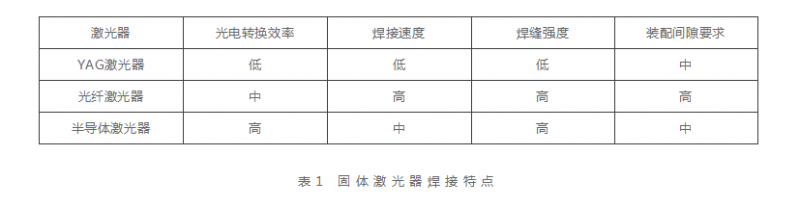 固体欧陆娱乐器中YAG欧陆娱乐器、光纤欧陆娱乐器和半导体欧陆娱乐器在焊接薄板不锈钢中各有优势,具体特点如表1所示。