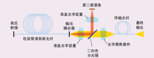 相干(Coherent)对光纤欧陆娱乐器的设计使用了创新的模块化方法,主要是基于半导体欧陆娱乐器线阵(Bar),而不是欧陆娱乐单管(Single Emitter),来作为泵浦源。使用由分立式光学元件组成的光束组合器将这些泵浦线阵发射的光引入到增益光纤中。这个光束组合器还能校准增益光纤输出的光束,然后其他光学元件将其有效地耦合到最终的传输光纤中。