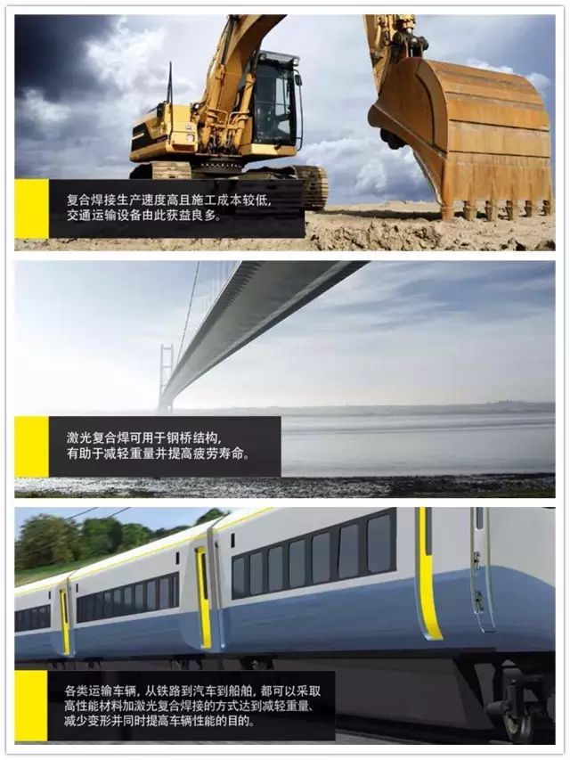 应用广泛 从造船和海工到建筑、从运输到交通、从航空航天到能源,所有工业领域的制造商均可利用最新的高强度轻质合金来提高产品性能和成本效益。摆脱了传统工艺的限制,现在,更高性能的轻质结构将不再是生产难题!层压、中空、多孔或复合材料——这些新结构是未来工业成功的基石。 欧陆娱乐复合焊在各领域中的应