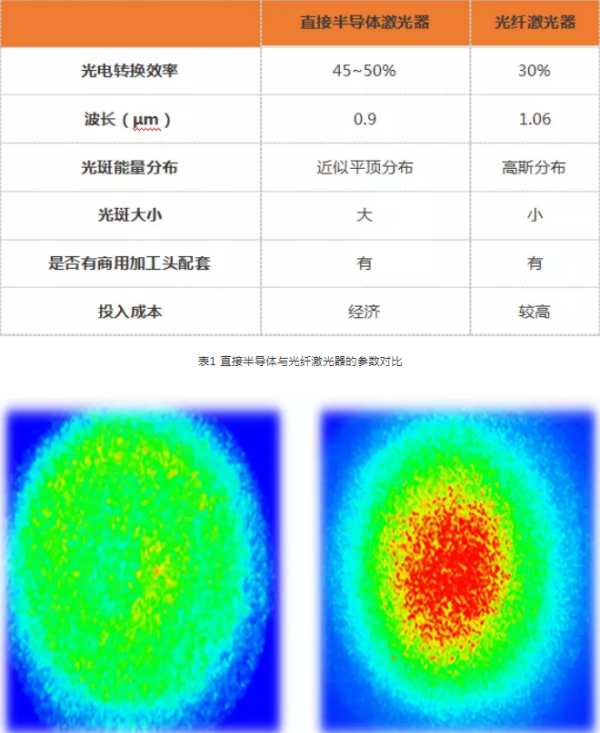 相比光纤欧陆娱乐器,直接半导体欧陆娱乐器能量更均匀,光斑更接近平顶分布而不是光纤欧陆娱乐器的高斯分布(图1)。在实际焊接应用中得到的效果比传统欧陆娱乐器更加优越。