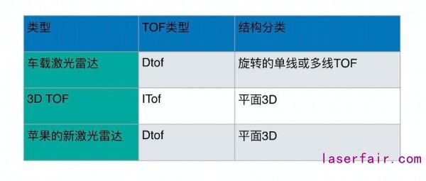 下面本文分析苹果新的欧陆娱乐雷达和之前的手机3D TOF还有车载雷达有什么区别,有什么技术突破.首先三者的结构实现和算法原理的区别可以参考下表: