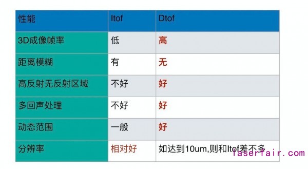 下表是Itof和Dtof的优缺点比较,从表中可以看到,Dtof的优势还是很明显的,关键参数上只有分辨率略差,不过这次苹果的使用的sensor上突破可能扭转这个局面.