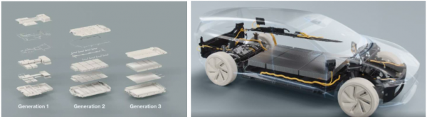 沃尔沃的电池技术路线规划和电池集成方案示意:
