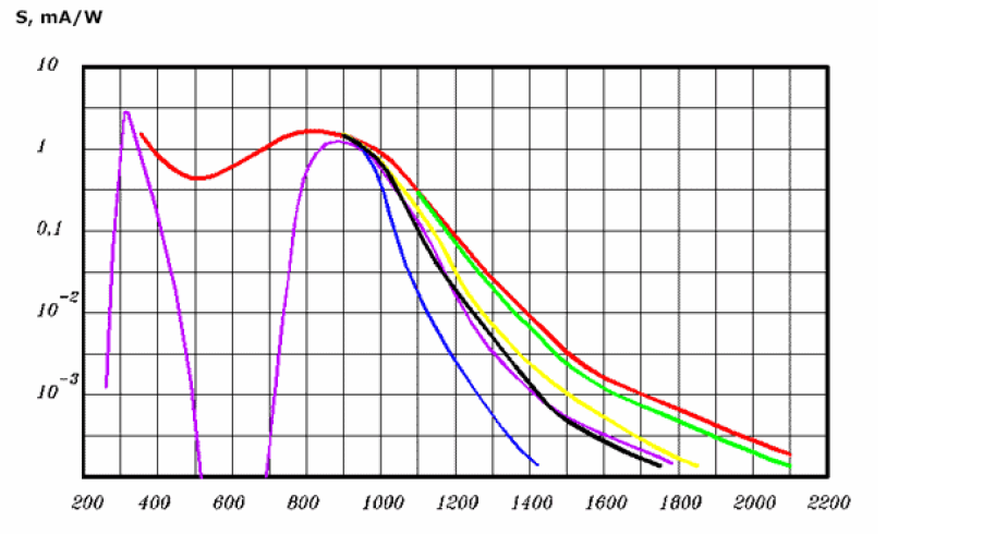 响应波长 | 350-1300 nm Abris-M 1700 1X:350-1700 nm Abris-M 2000 1X:350-2000 nm | Abris-M 1300 2X:350-1300 nm Abris-M 1700 2X:350-1700 nm Abris-M 2000 2X:350-2000 nm |