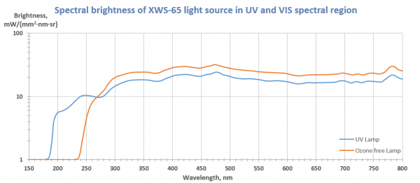 XWS-65光源的紫外-可见光波段的辐亮度曲线